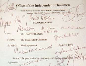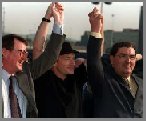 ![]() Pray For A Just And Lasting Peace in Northern Ireland The carefully brokered deal that respects the rights to all parties of the North and the Republic holds the best chance for a peaceful solution to the 'troubles'. Although the Irish constitution was amended to relinquish territorial claims to the 6 counties of Ulster under British rule, the agreement gives the Republic cross border rights for the first time. The document offers a democratic framework for parties who heretofore refused to be in the same room let alone talk to each other. Most importantly the people of the North are given the right to work together to choose their own ultimate destiny. This in itself offers the best chance of hope and peace for a united Ireland. There are extremists who feel the way to derail this process is to exercise political intransigence. The people North and South have spoken in unprecedented democratic numbers. We pray that their aspirations will be peacefully realized. CONTINUED CRISIS IN MOVING PEACE PROCESS FORWARD The resignation of NI Secretary Peter Mandelson has been widely received as a favorable move. The fragile accord continues to be bogged down by discord over the Patten Report policing recommendations, decommissioning, and demilitarization.